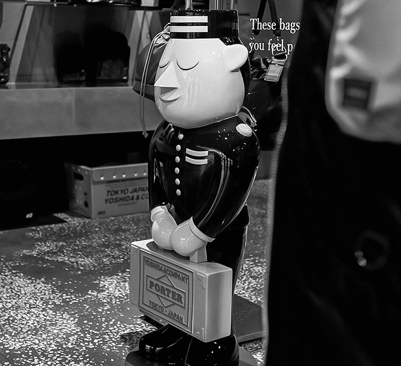 포터의 아이템에 자주 사용되는 오렌지 컬러는 브랜드를 상징하는 시그니처 컬러이다. 모든 가방에는 장인의 혼과 숙련된 기술이 담겨 있다. 가방에 대한 남다른 애정은 브랜드 마스코트 벨보이에서도 엿보인다. 호텔에서 손님의 체크인을 돕고 짐을 나르는 벨보이 ‘PORTER’는 가방을 가장 많이 다루고 잘 아는 사람으로, 포터의 전문성과 열정을 나타낸다.느리지만 강한 가방