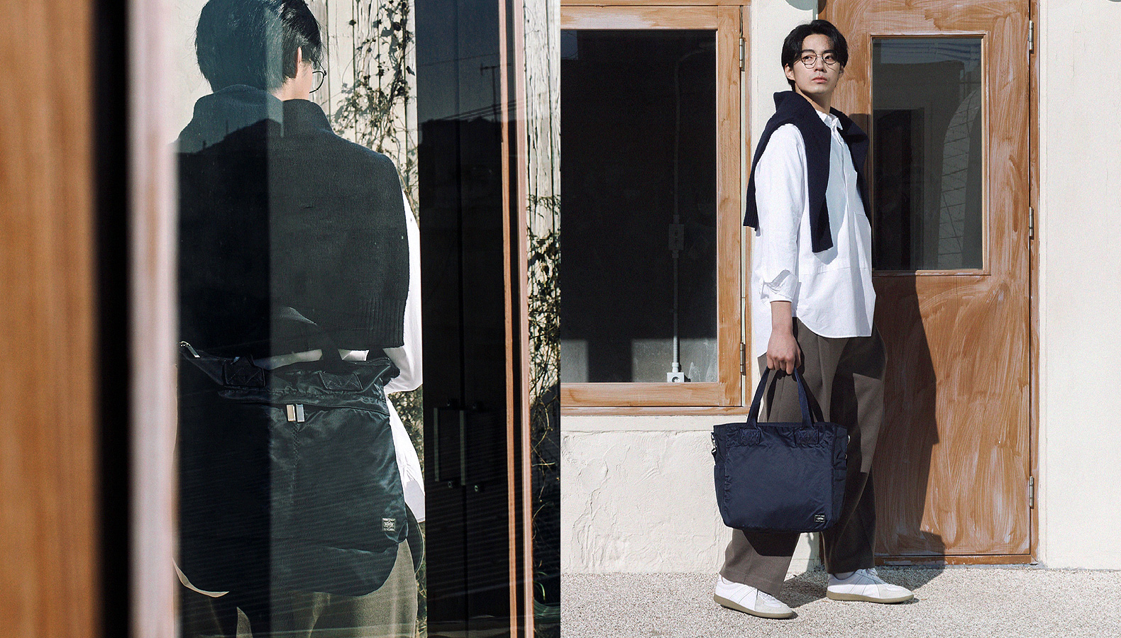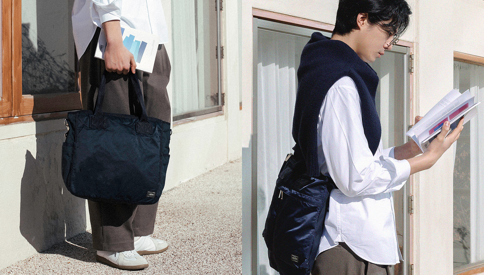 포터의 프레임 시리즈 나일론백은 다채로운 캠퍼스 룩과 잘 어우러지면서도 전공 서적의 무게까지 견디게 해주는 실용적인 아이템이다. 셔츠, 후디, 청바지 등 캐주얼한 옷차림에 나일론백을 더해 지적이면서도 깔끔한 이미지를 모두 가질 수 있다.Business Casual